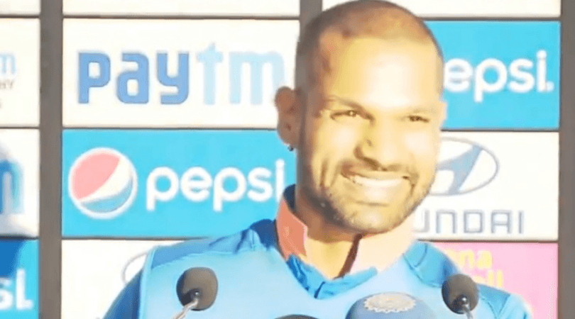 Shikhar Dhawan’s hilarious reaction after spotlight falls on him: The Indian opening batsman was interrupted twice during the presser.