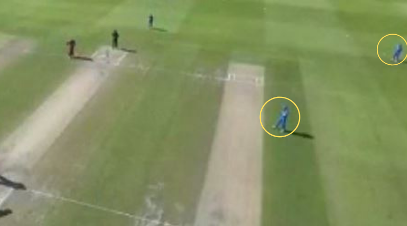 With mutual consent, Kohli cleverly placed two fielders- one at the conventional extra cover and the other fielder (Kedar Jadhav) just to the right to the aforementioned at the edge of the 30-yard circle.