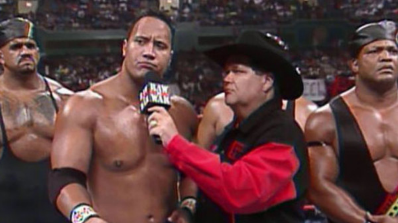“I grabbed that microphone, I said, you know, this is the very first night I turned bad, and I said, ‘I may be a lot of things, but sucks isn’t one of them.’ And I said, ‘Me joining The Nation is not a black thing, it’s not a white thing, it’s a respect thing, and I’m gonna earn it every night by kicking that ass.’ You know, and I start talking a little s–t, but it was in that moment, that you could feel the crowd of 15,000 or 20,000 people go, ‘That’s real. What he just said, he just spoke from the heart’. And that led to the birth, if you will, of The Rock.”