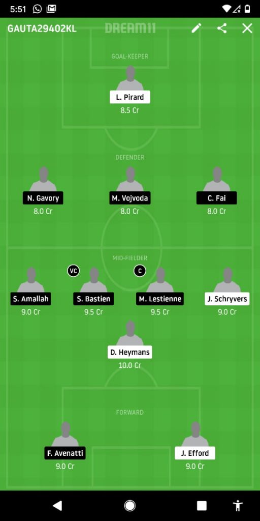 While that performance alludes towards a string showing by the side today as well, we don’t see them keeping their unbeaten record intact today. They are up against a way superior St. Liege side, a team which showed how clinical it is defensively in its 1-0 win the last gameweek.