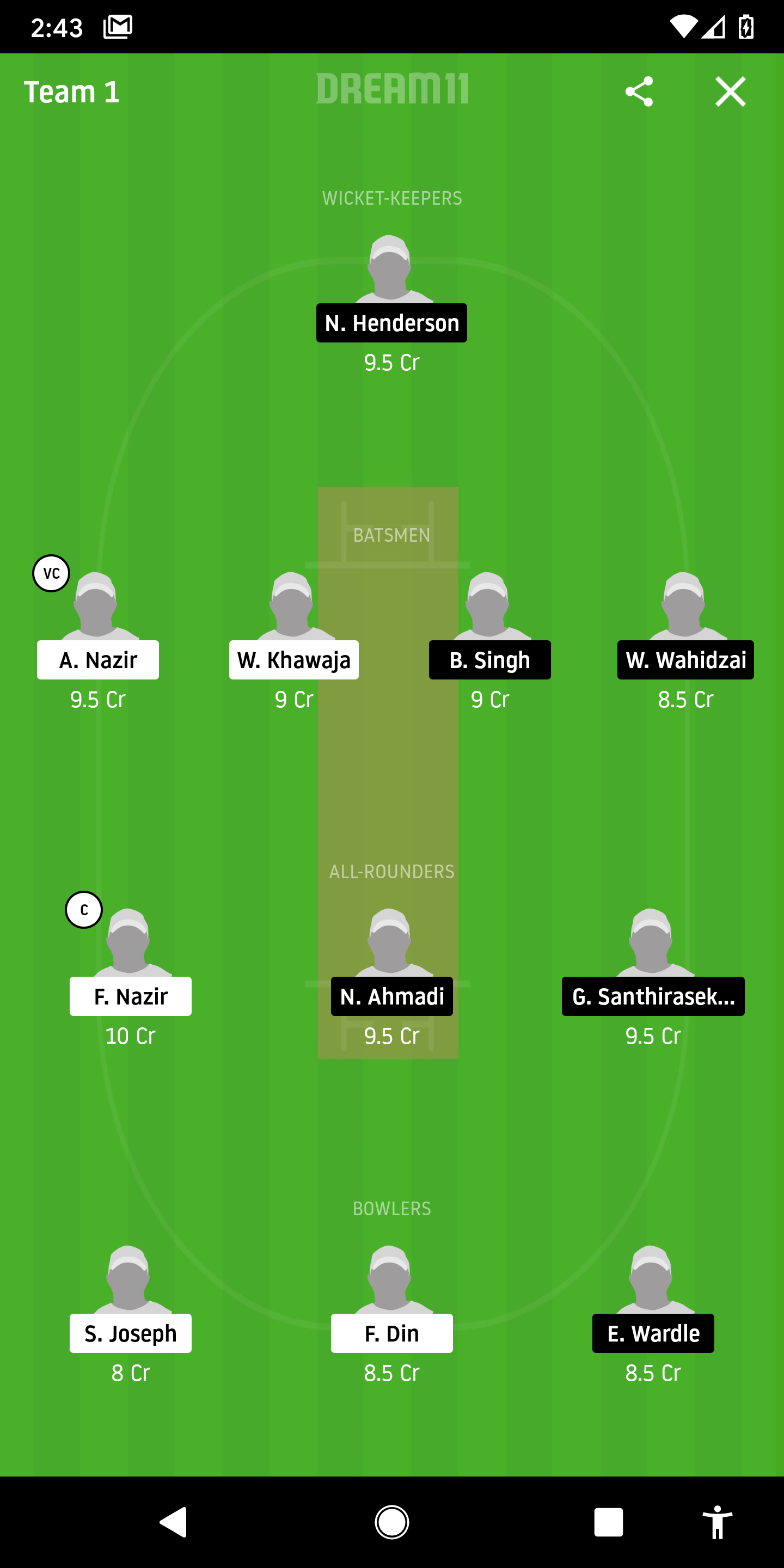 Their versatile attributes see Faheem captain our side while Azeem is the vice-captain.